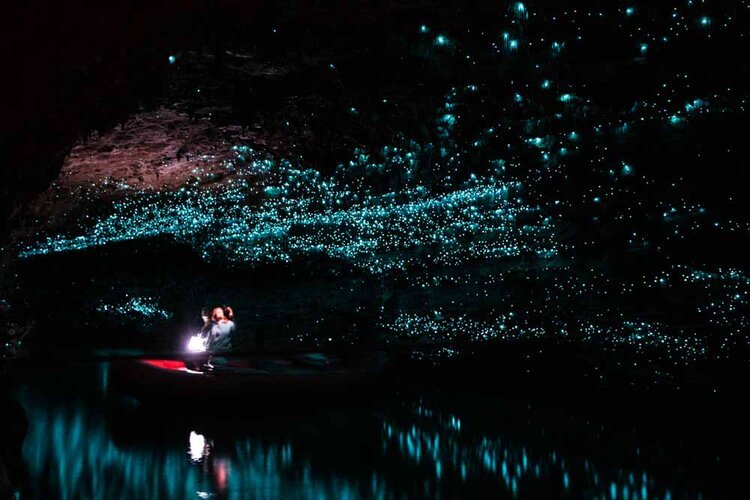 • Take a guided boat ride through the Glowworm Caves, where the ceilings sparkle with thousands of glowing insects.